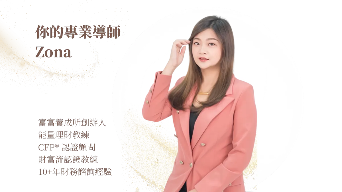 你將帶走三樣關鍵成果:1. 一張個人財富定位地圖,清晰知道自己的財務現況與卡點;2. 一份專屬的30天行動藍圖,知道接下來每一步該做什麼;3. 最重要的,是一套內在的「財富管理者」思維模式,這將是你未來所有財務決策的穩定核心。